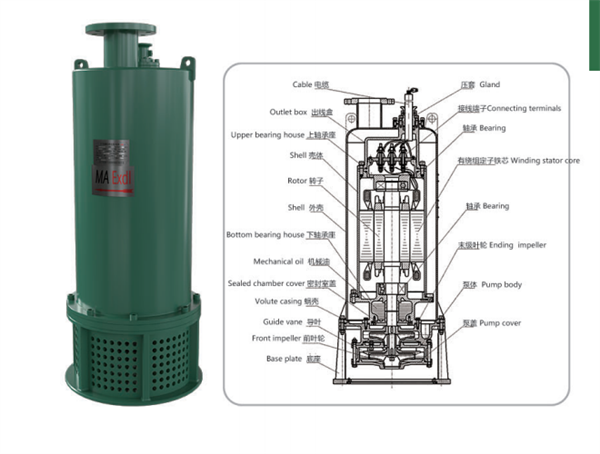 BQS系列(liè)礦用隔爆型排污(wū)排沙潛水電泵